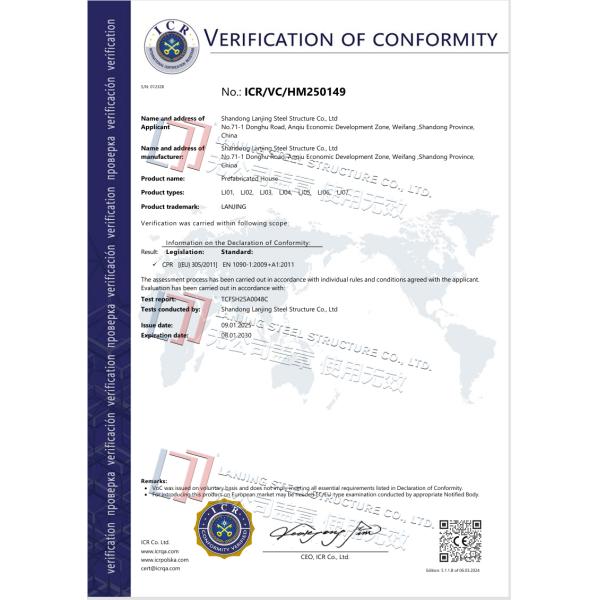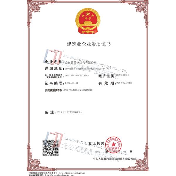 Issued By: Shandong Lanjing Steel Structure Co.. Ltd